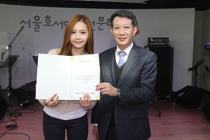 합격통보를 받은 송하예 양은 본교 김남균 학장님과 직접 만나 합격증을 건네받으며, 열심히 공부해서 꼭 음악으로 보답하는 가수가 되겠다는 포부를 밝혔습니다.