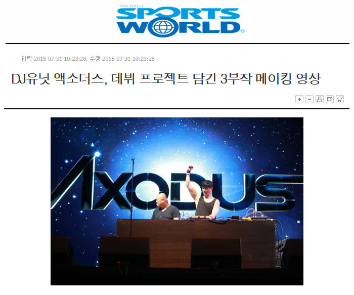 한편, 돈스파이크와 DJ한민의 2인조 DJ유닛 액소더스는 오늘 뮤직비디오 막바지 촬영에 돌입했으며, 다양한 프로모션과 함께 8월13일 첫 음원 발표를 앞두고 있다.