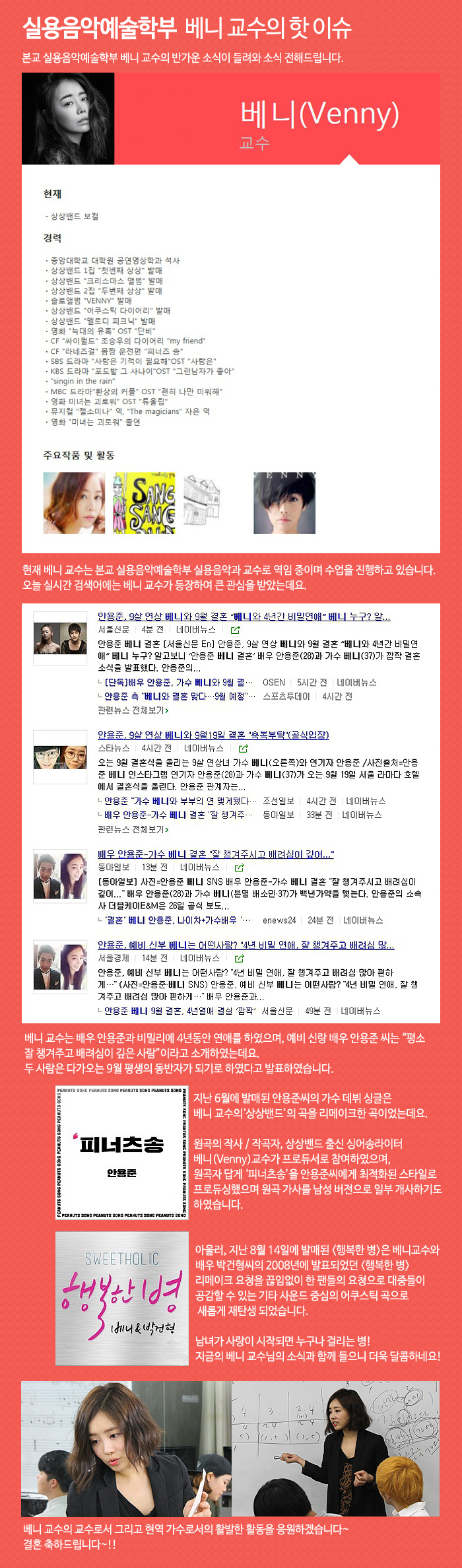 본교 실용음악예술학부 베니 교수의 반가운 소식이 들려와 소식 전해드립니다.