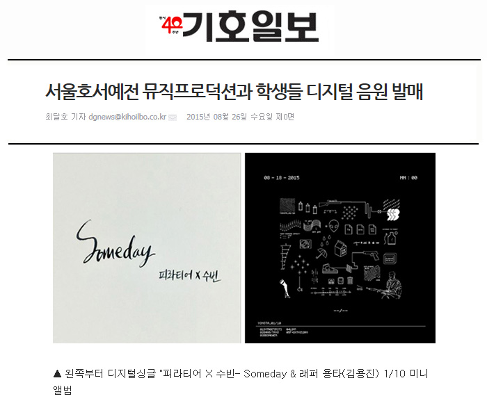 또한 서울호서예술실용전문학교 뮤직프로덕션과 15학번에 JDD Sound의 래퍼 용타(김용진) 학생이 ‘1/10’이란 미니앨범으로 신호탄을 터뜨렸다.