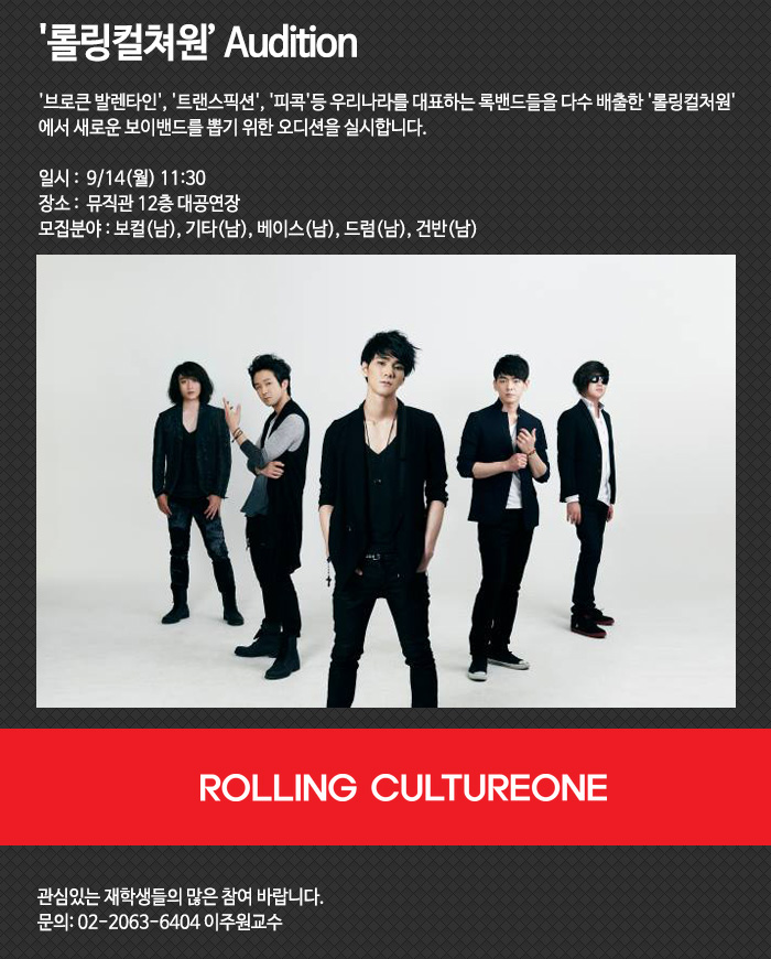 모집분야: 보컬(남), 기타(남), 베이스(남), 드럼(남), 건반(남)