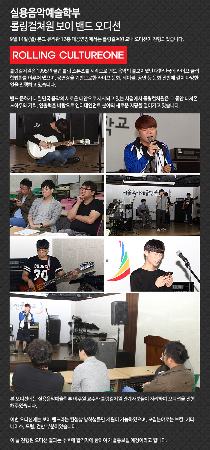 9월 14일(월) 본교 뮤직관 12층 대공연장에서는 롤링컬쳐원 교내 오디션이 진행되었습니다.