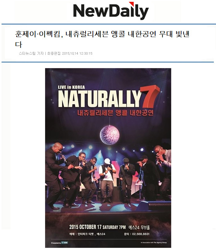[뉴데일리]훈제이·이펙킴, 내츄럴리세븐 앵콜 내한공연 무대 빛낸다
