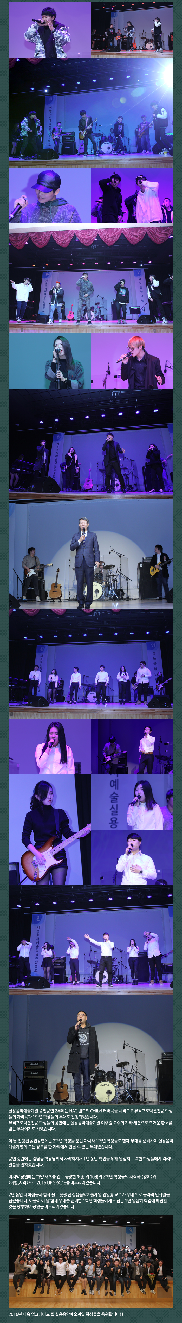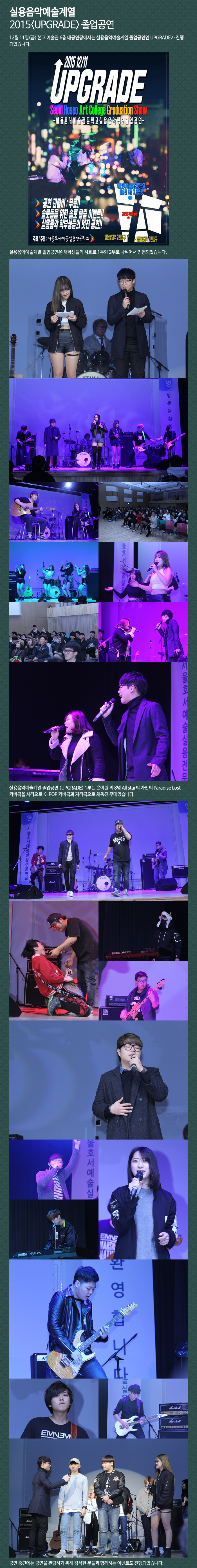 12월 11일(금) 본교 예술관 6층 대공연장에서는 실용음악예술계열 졸업공연인 UPGRADE가 진행되었습니다.