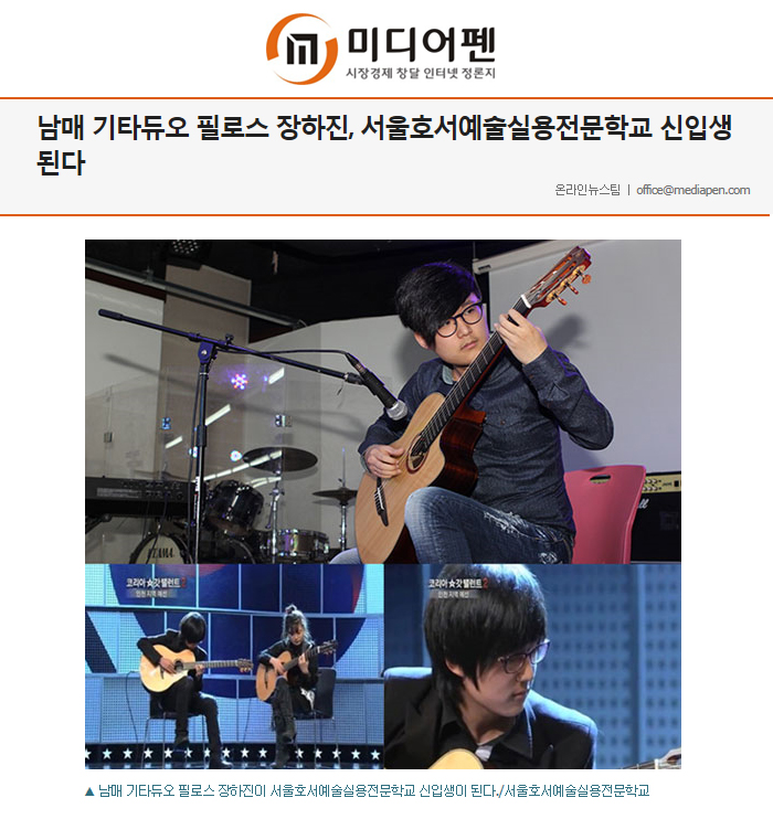 [미디어펜]남매 기타듀오 필로스 장하진, 신입생 된다