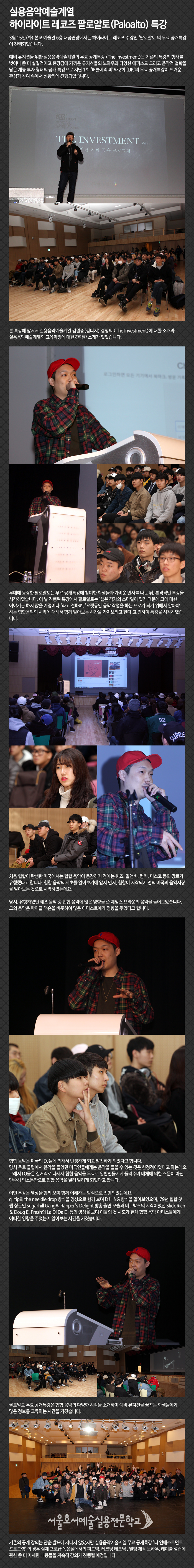 3월 15일(화) 본교 예술관 6층 대공연장에서는 하이라이트 레코즈 수장인 팔로알토의 무료 공개특강이 진행되었습니다.