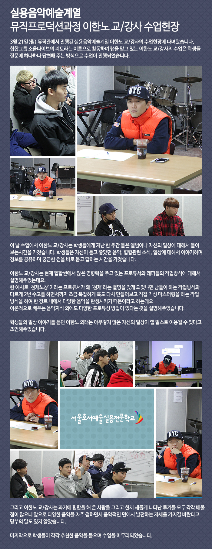 3월 21일(월) 뮤직관에서 진행된 실용음악예술계열 이한노 교수의 수업현장에 다녀왔습니다.