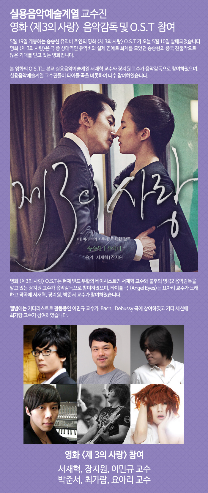 실용음악예술계열 교수진 영화 <제3의 사랑> 음악감독 및 O.S.T 참여