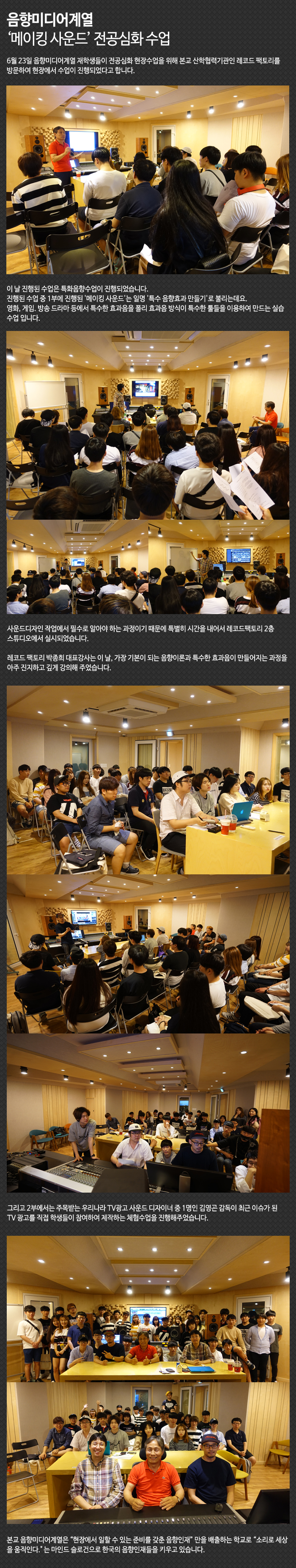 6월 23일 음향미디어계열 재학생들이 전공심화 현장수업을 위해 본교 산학협력기관인 레코드 팩토리를 방문하여 현장에서 수업이 진행되었다고 합니다.