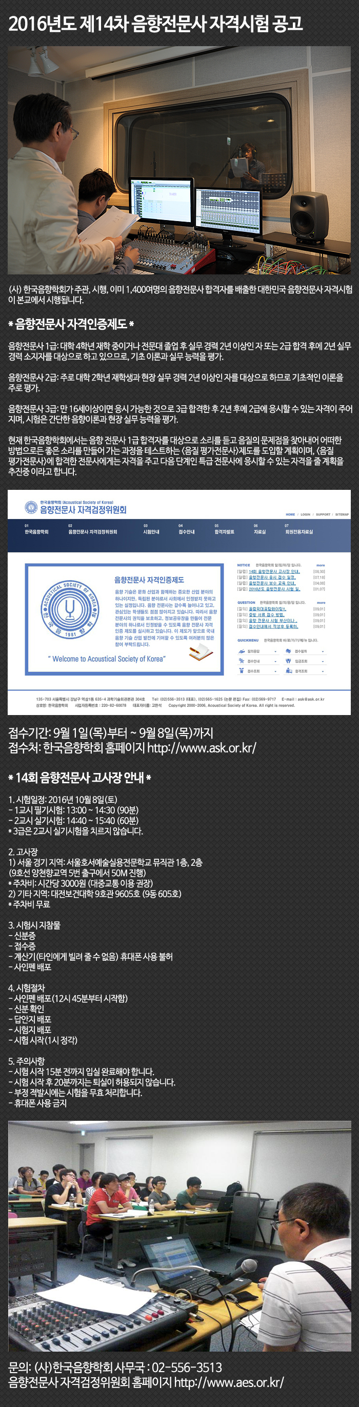 음향전문사 자격검정위원회 홈페이지 http://www.aes.or.kr/