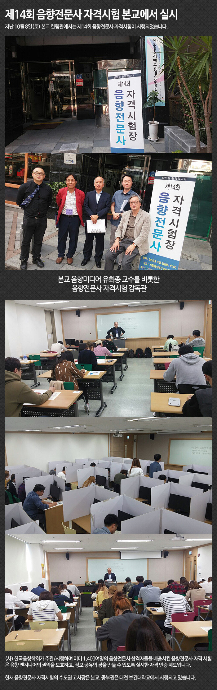제14회 음향전문사 자격시험 본교에서 실시