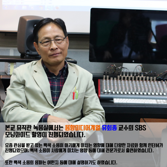 본교 뮤직관 녹음실에서는 유회종 교수가 SBS 모닝와이드와의 촬영이 진행되었습니다.