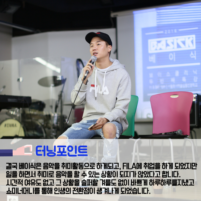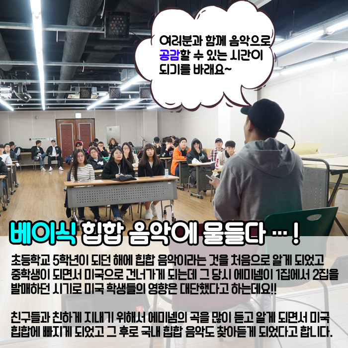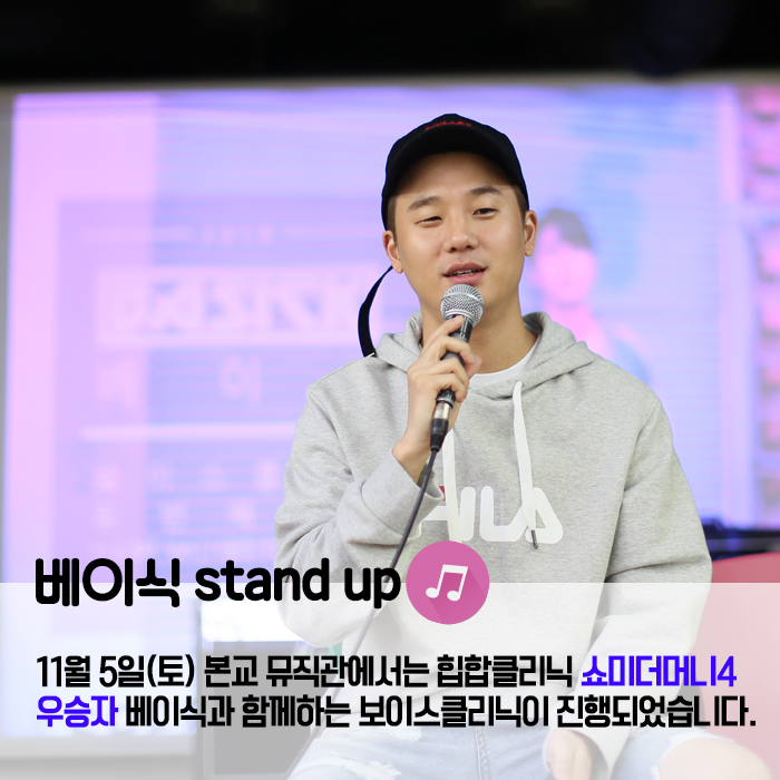 11월5일(토) 본교 뮤직관에서는 쇼미더머니4의 우승자 베이식과 함께하는 힙합클리닉이 진행되었습니다.