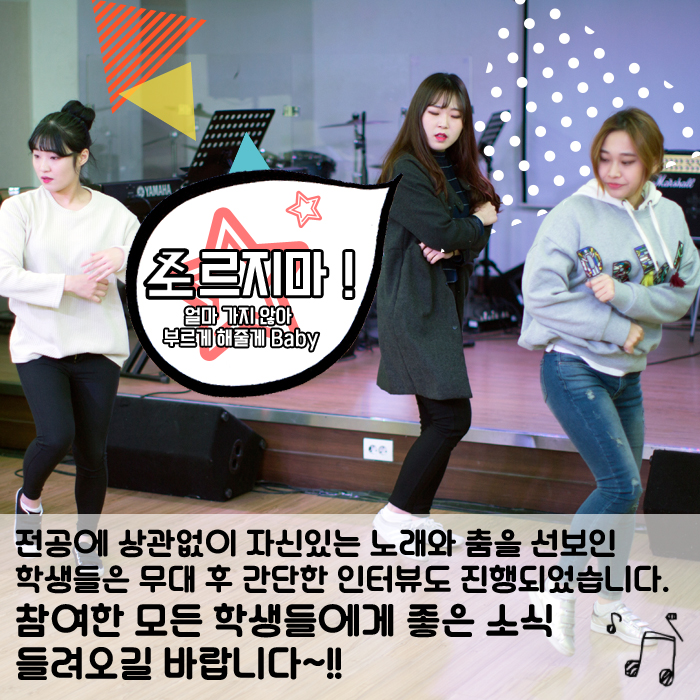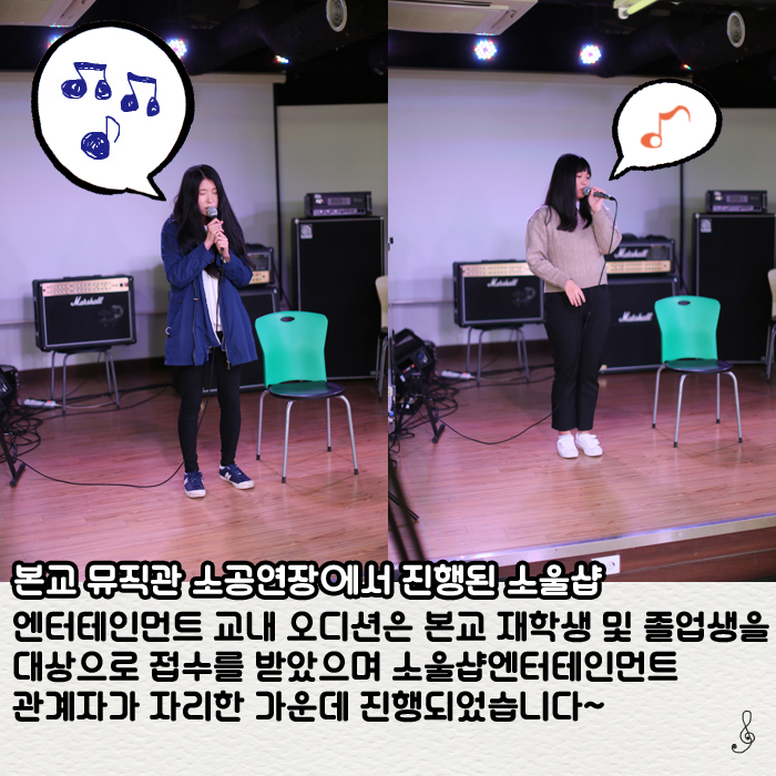11월10일(목) 본교 뮤직관에서는 소울샵엔터테인먼트 교내 오디션이 진행되었습니다.