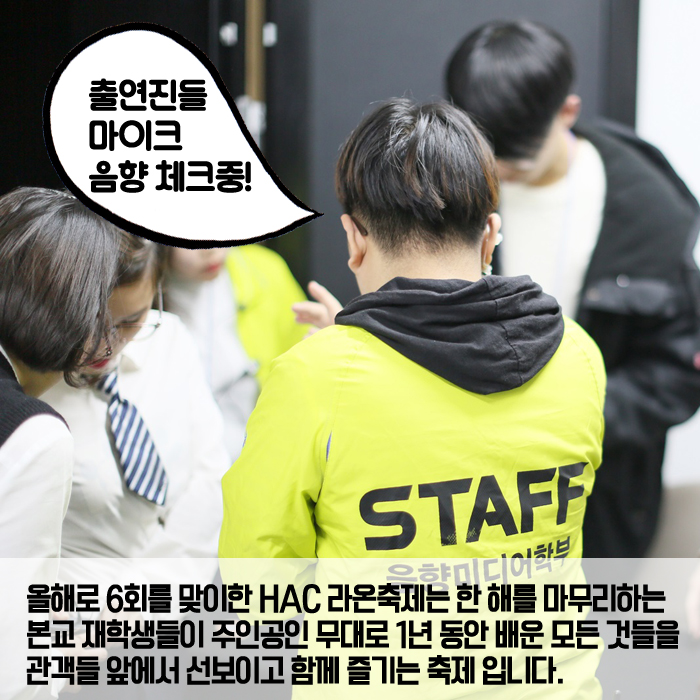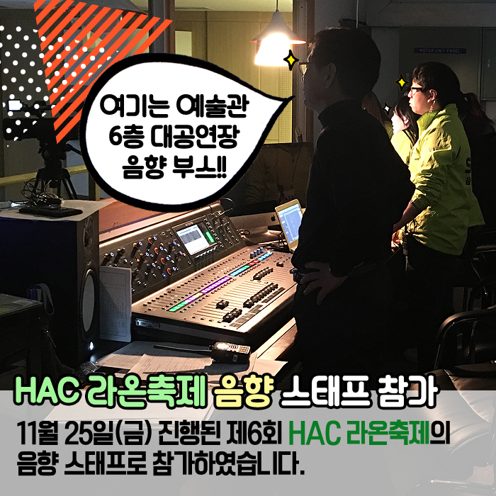 11월 25일(금) 진행된 제6회 HAC 라온축제의 음향 스태프로 참가하였습니다.