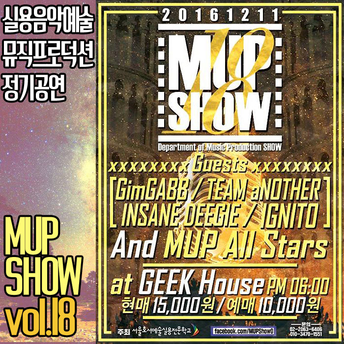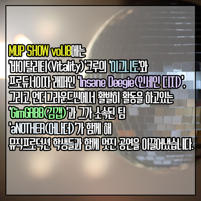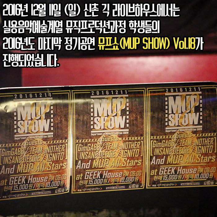 12월 11일(일) 실용음악예술계열 뮤직프로덕션의 정기공연 'MUP Show vol.18(뮤프쇼)'가 성황리에 진행되었습니다.