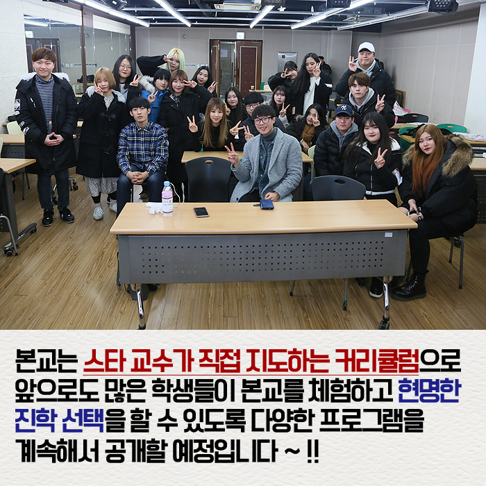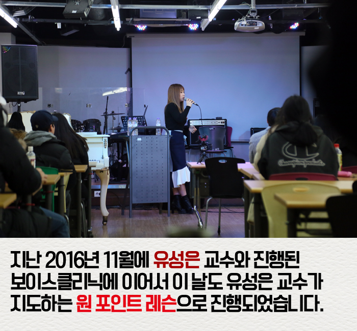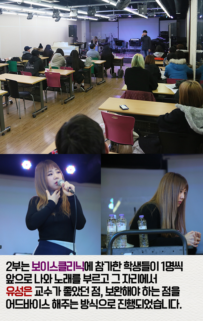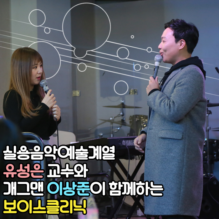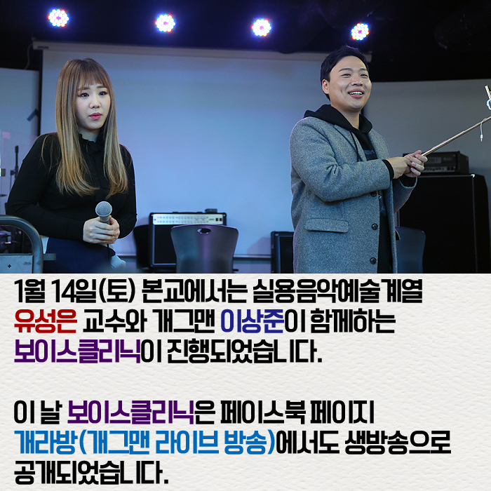 1월 14일(토) 본교에서는 실용음악예술계열 유성은 교수와 개그맨 이상준이 함께하는 보이스클리닉이 진행되었습니다.