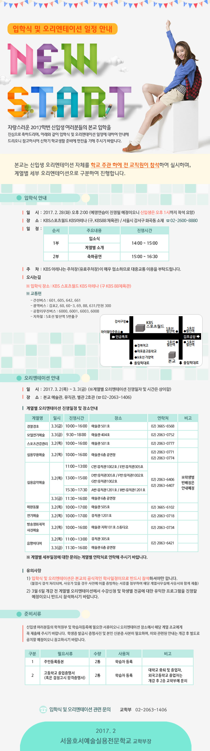 2017학년도 입학식 및 오리엔테이션 일정 안내