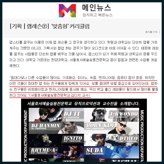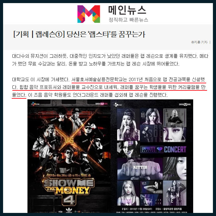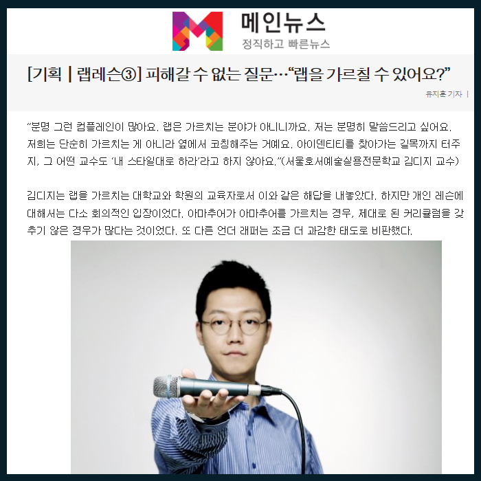 당신은 랩스타를 꿈꾸는가 - 뮤직프로덕션 김원종[김디지]교수의 기획기사 中