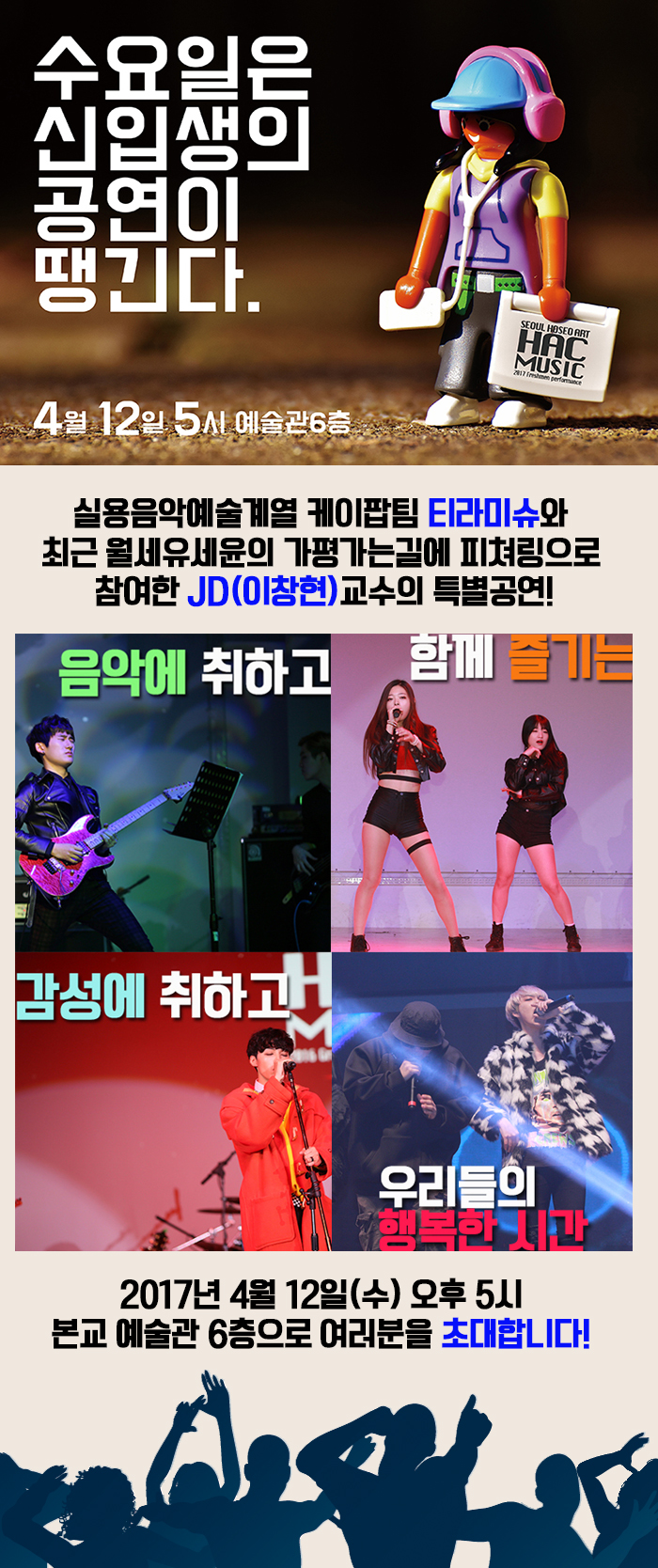 오는 4월 12일(수) 오후4시 본교 예술관 6층 대공연장에서는 용음악예술계열 신입생공연이 진행됩니다.