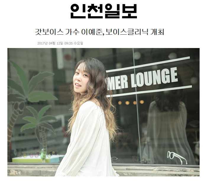 한편 2017년 4월 29일(토) 오후1시에 진행되는 이예준의 보이스클리닉 참가신청은 서울호서예전 홈페이지에서 가능하다.