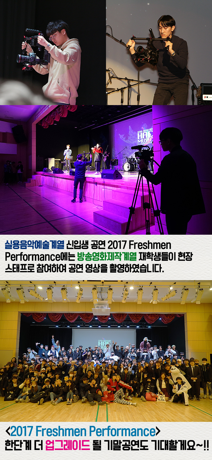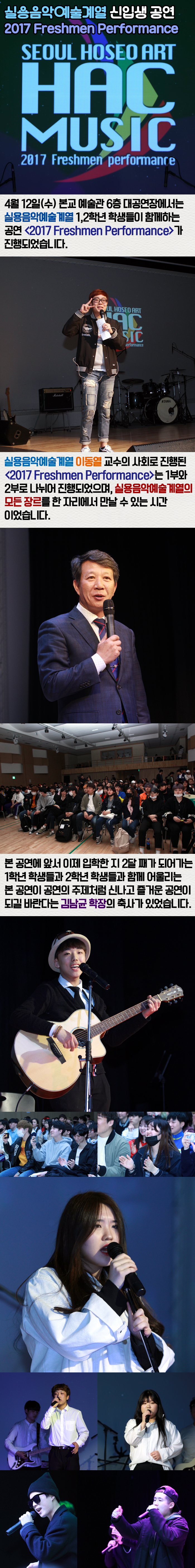 4월 12일(수) 본교 예술관 6층 대공연장에서는 실용음악예술계열 1,2학년 학생들이 함께하는 공연 2017 Freshmen Performance가 진행되었습니다.