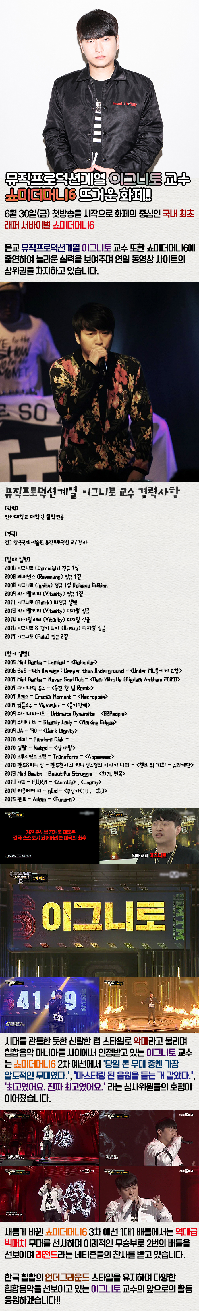 본교 뮤직프로덕션계열 이그니토 교수 또한 쇼미더머니6에 출연하여 놀라운 실력을 보여주며 연일 동영상 사이트의 상위권을 차지하고 있습니다.