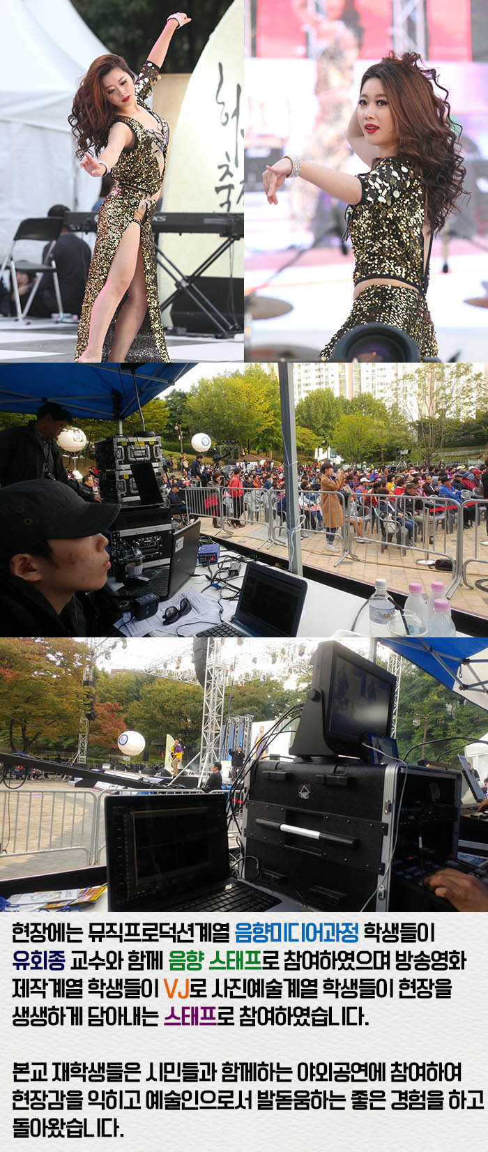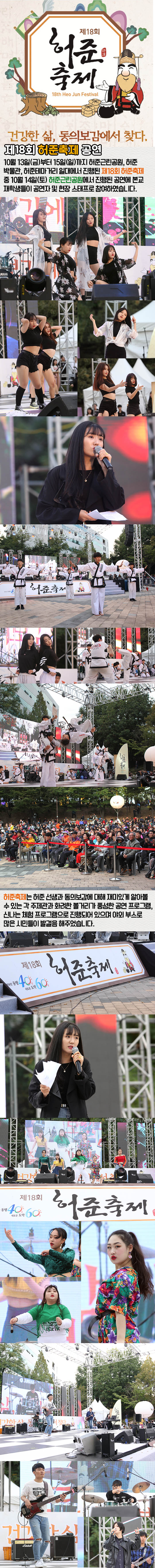 10월 13일(금)부터 15일(일)까지 허준근린공원, 허준박물관, 허준테마거리 일대에서 진행된 제18회 허준축제 중 10월 14일(토) 허준근린공원에서 진행된 공연에 본교 재학생들이 공연자 및 현장 스태프로 참여하였습니다.