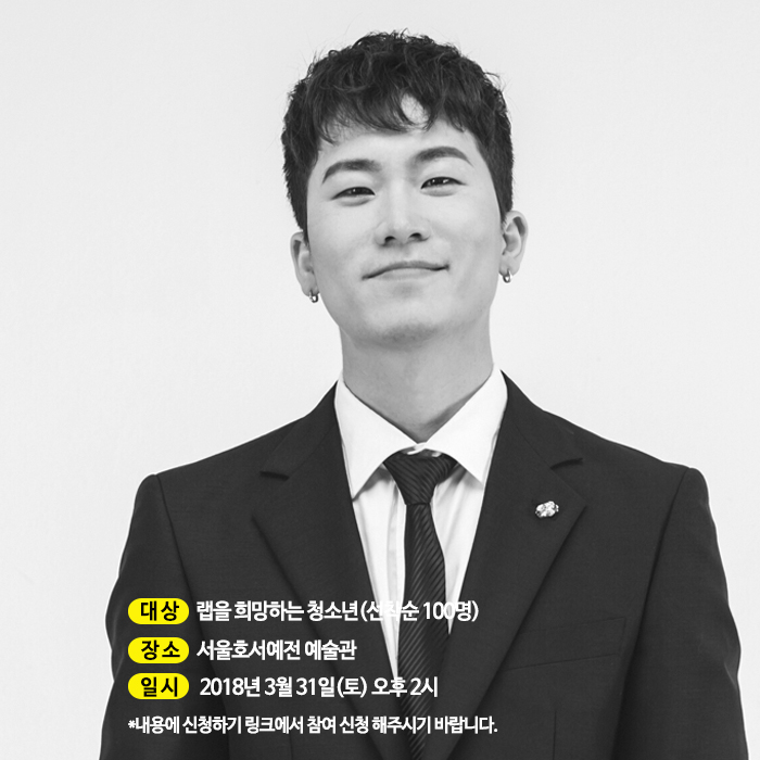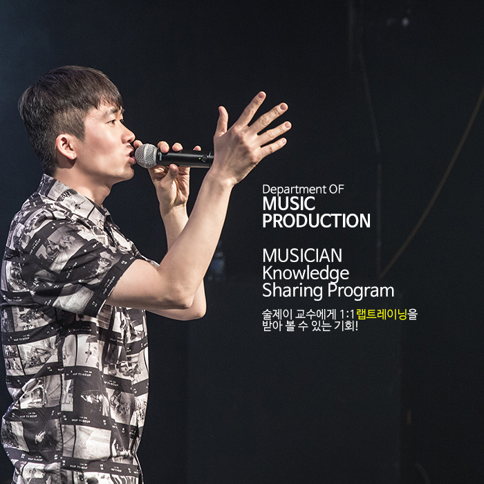 오는 3월 31일(토) 오후 2시 본교 예술관 대강당에서 힙합 뮤지션 '술제이'의 무료특강이 실시됩니다.