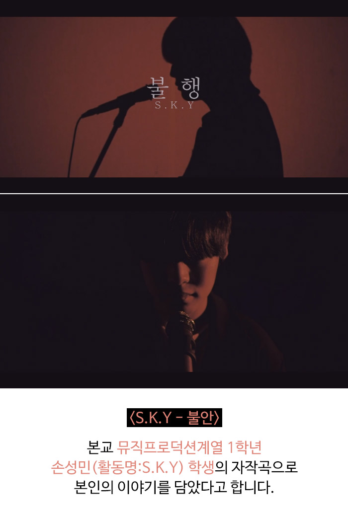 본교 뮤직프로덕션계열 1학년 손성민(활동명:S.K.Y) 학생의 자작곡을 소개합니다.
