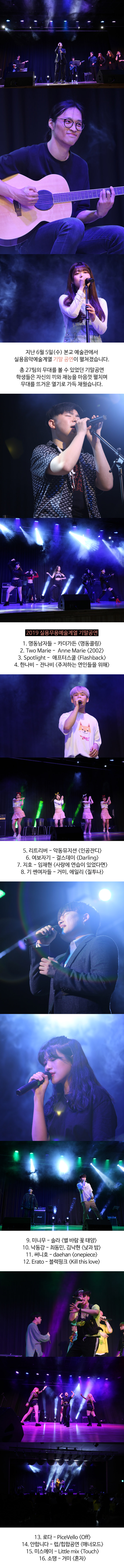 지난 6월 5일 (수) 본교 예술관에서 실용음악예술계열 학생들의 기말공연이 진행되었습니다.