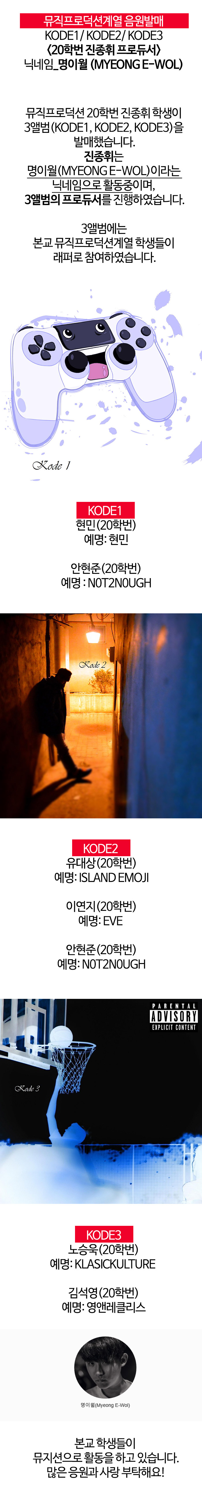 뮤직프로덕션 20학번 진종휘 학생이 3앨범(kode1, kode2, kode3)을 발매했습니다.