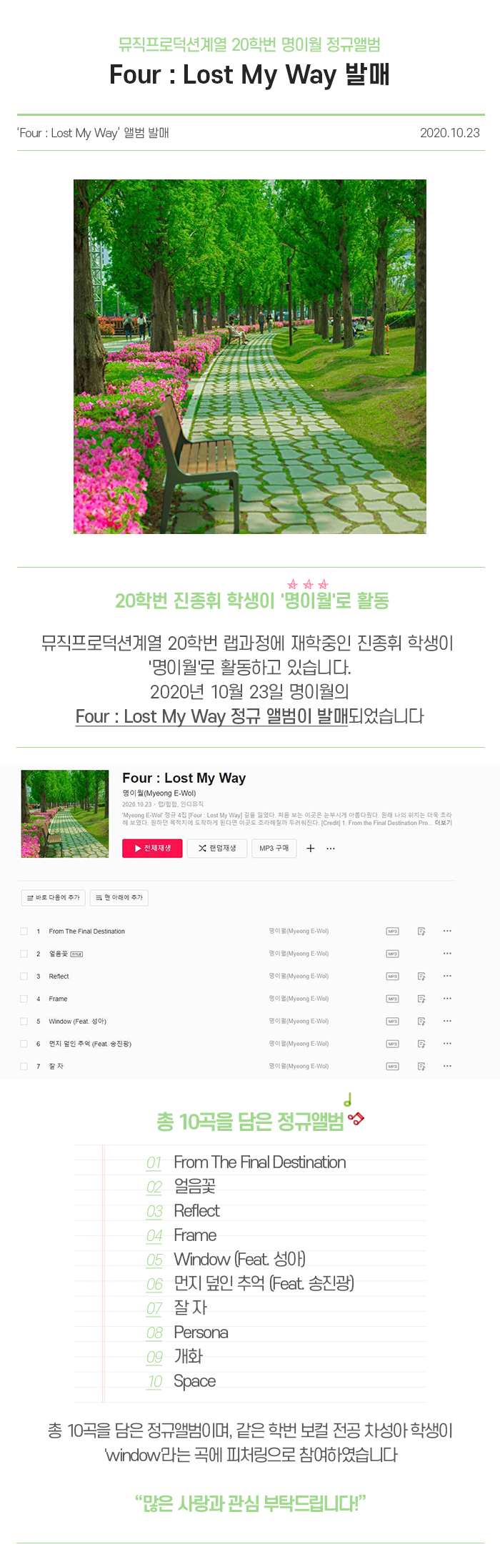 뮤직프로덕션계열 20학번 명이월 정규앨범 Four : Lost My Way 발매