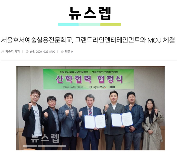 [언론보도]그랜드라인엔터테인먼트와 MOU 체결