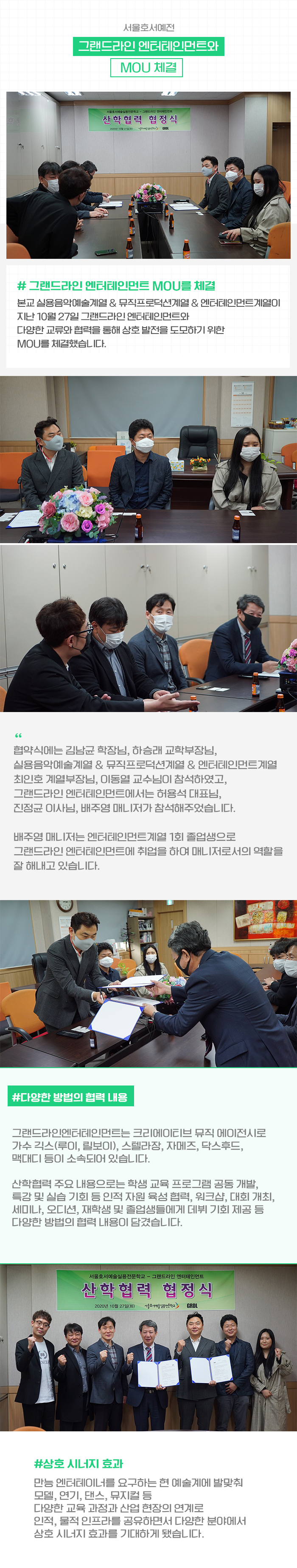 서울호서예전, 그랜드라인 엔터테인먼트와 MOU 체결