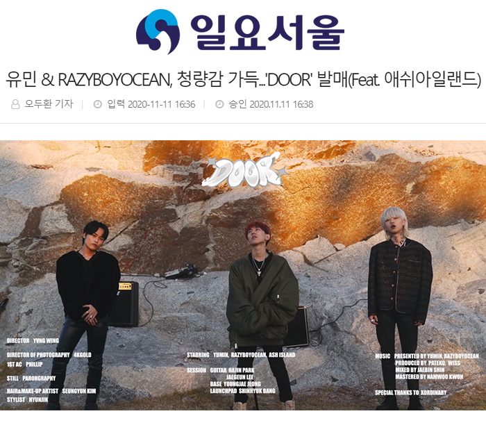 [언론보도]유민 & RAZYBOYOCEAN, 청량감 가득...'DOOR' 발매(Feat. 애쉬아일랜드)