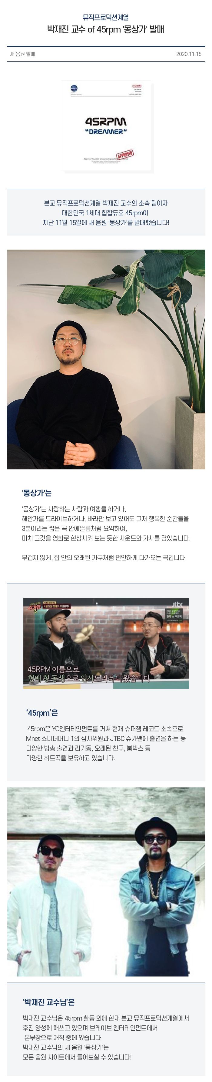 뮤직프로덕션계열 박재진 교수 of 45rpm '몽상가' 발매