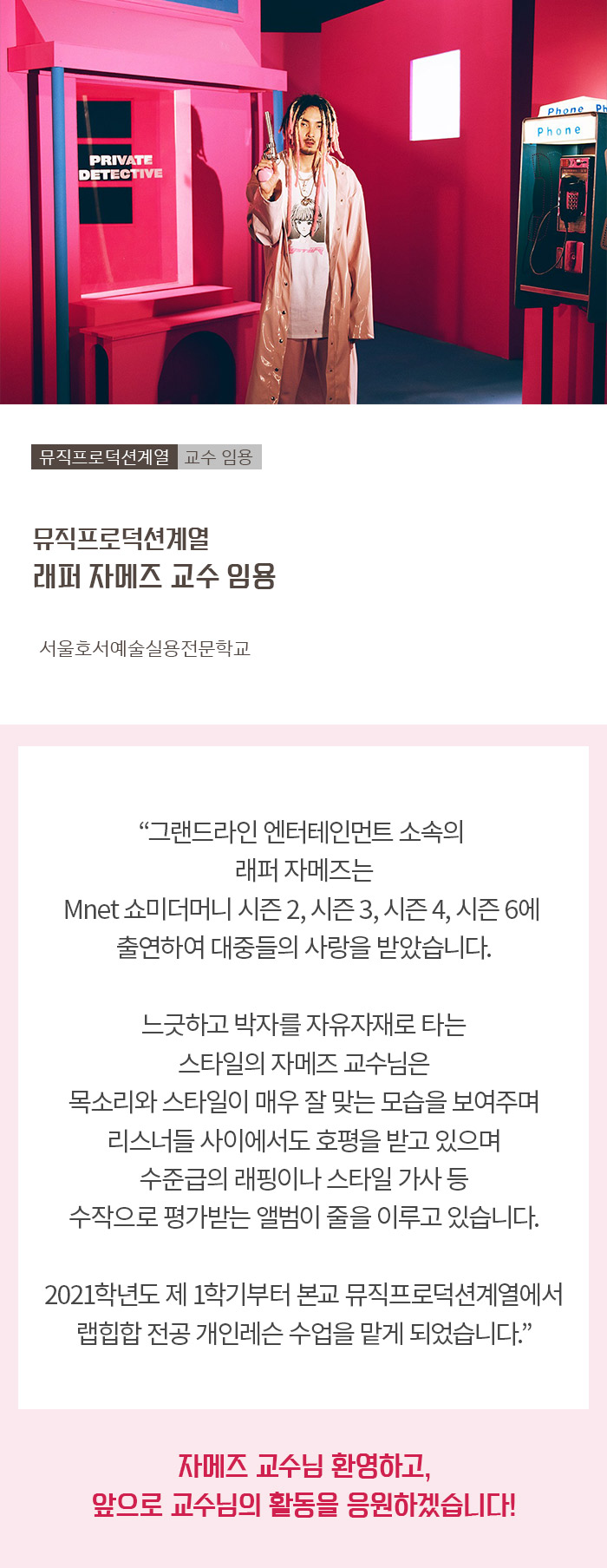 뮤직프로덕션계열 래퍼 자메즈 교수 임용