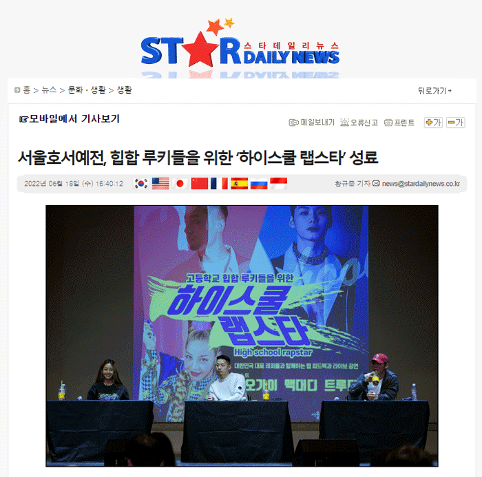 [언론보도] 서울호서예전, 힙합 루키들을 위한 ‘하이스쿨 랩스타’ 성료