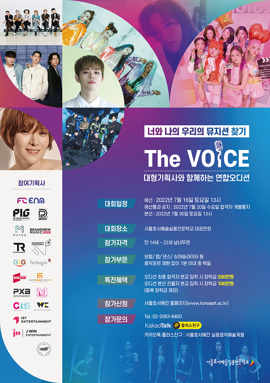 서울호서예술실용전문학교 실용음악예술계열 2022 대형기획사 연합오디션 THE VOICE 신청하기