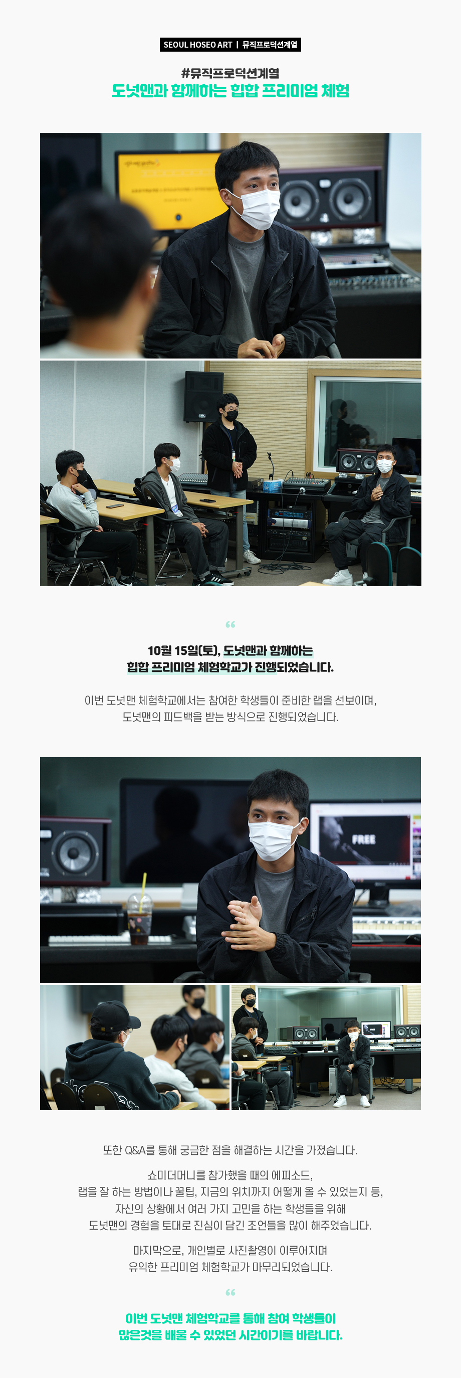 뮤직프로덕션계열 도넛맨과 함께하는 힙합 프리미엄 체험
