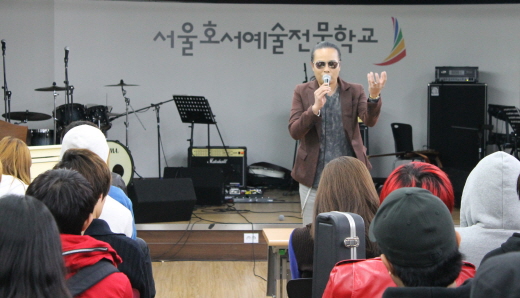 부활의 리더이자 남자의 자격, 위대한 탄생 3의 멘토로도 유명한 김태원 명예교수(본교 실용음악예술계열)가 본관 12층 대강당에서 실용음악예술계열 예비 신입생 및 재학생, 그리고 일반인들을 대상으로 자신의 음악 노하우를 전수하는 공개 강의를 진행했다.