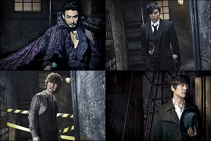 ▲ 뮤지컬<잭더리퍼>에 '잭' 역으로 출연하는 신성우, 김법래와 '앤더슨' 역으로 출연하는 민영기, 이건명(좌측 위부터 시계방향) 사진=엠뮤지컬