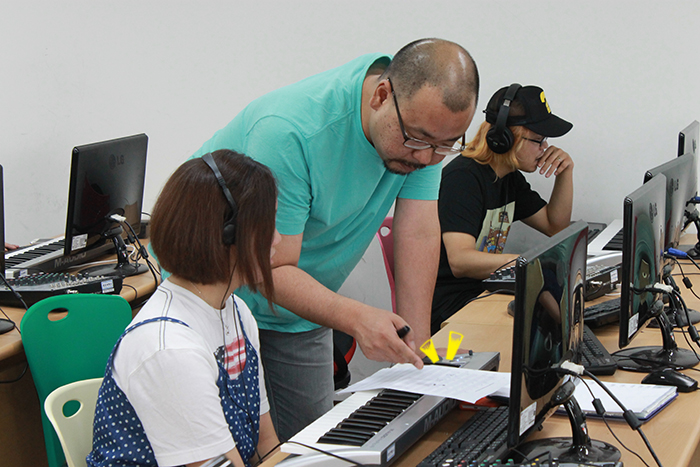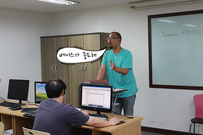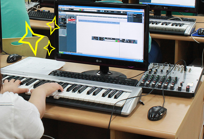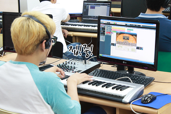 학생들 모두 야마하믹서를 이용해 자신만의 색깔있는 노래를 만들고 있어요.