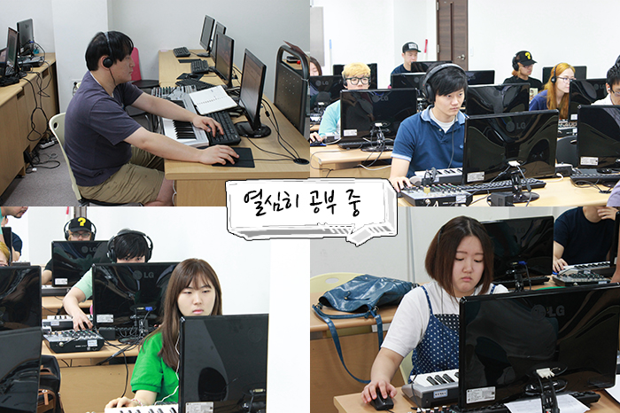 실용음악예술학부 학생들이 헤드폰을 끼고 있는데요.