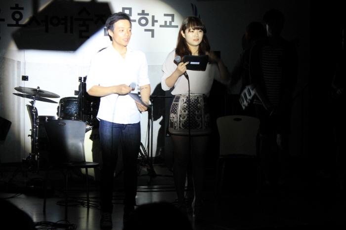 스포트라이트 조명이 켜지고 MC 두 명이 무대위로 올라왔습니다~