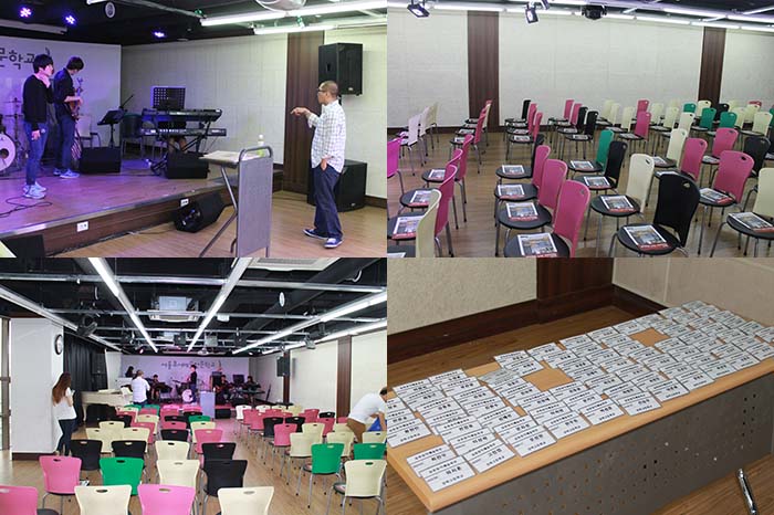 경복고 학생들이 오기 전 본관 12층 대공연장에서 학생들을 맞이할 준비를 하고 있었는데요. 체험학교를 신청한 학생들의 이름표가 준비되어 있어요.