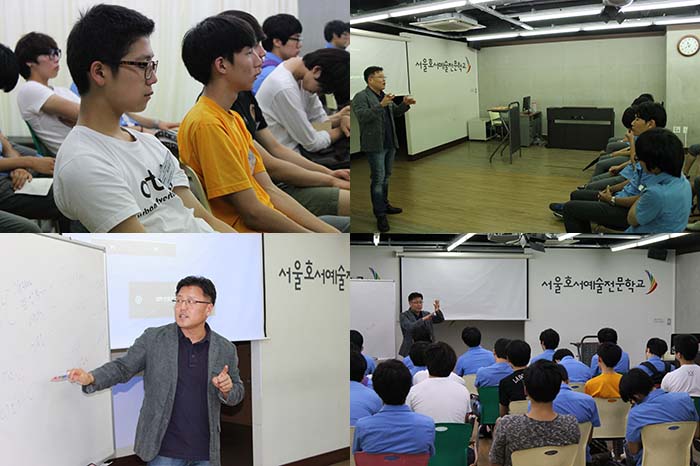 연기예술학부에 관심있는 학생들 학교에서 배울 수 없는 강의에 집중해서 듣고 있어요.