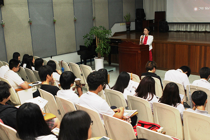 서울호서 강당에 모인 통진고등학교 학생들! 학교소개를 들은 후 본격적인 수업이 시작되었는데요.