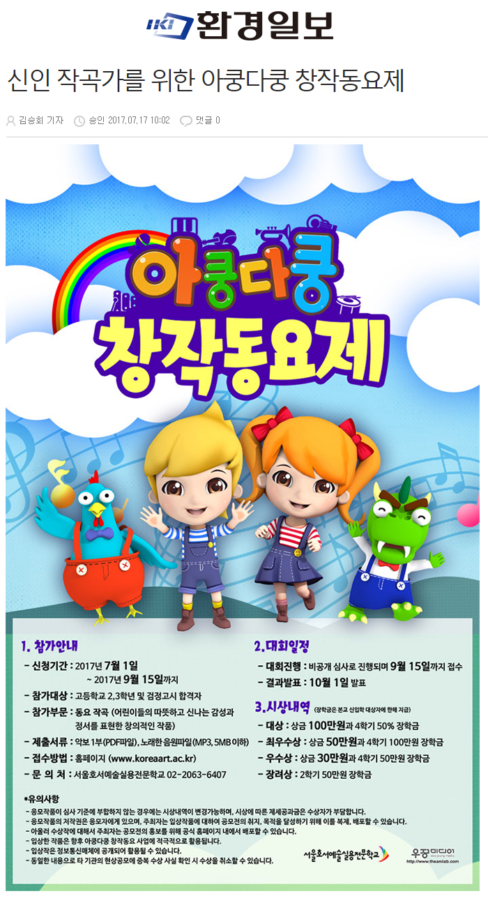 [환경일보]신인 작곡가를 위한 아쿵다쿵 창작동요제